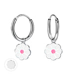 Детски Сребърни Обеци Халки с Висулка "Бяло Цвете" (925)