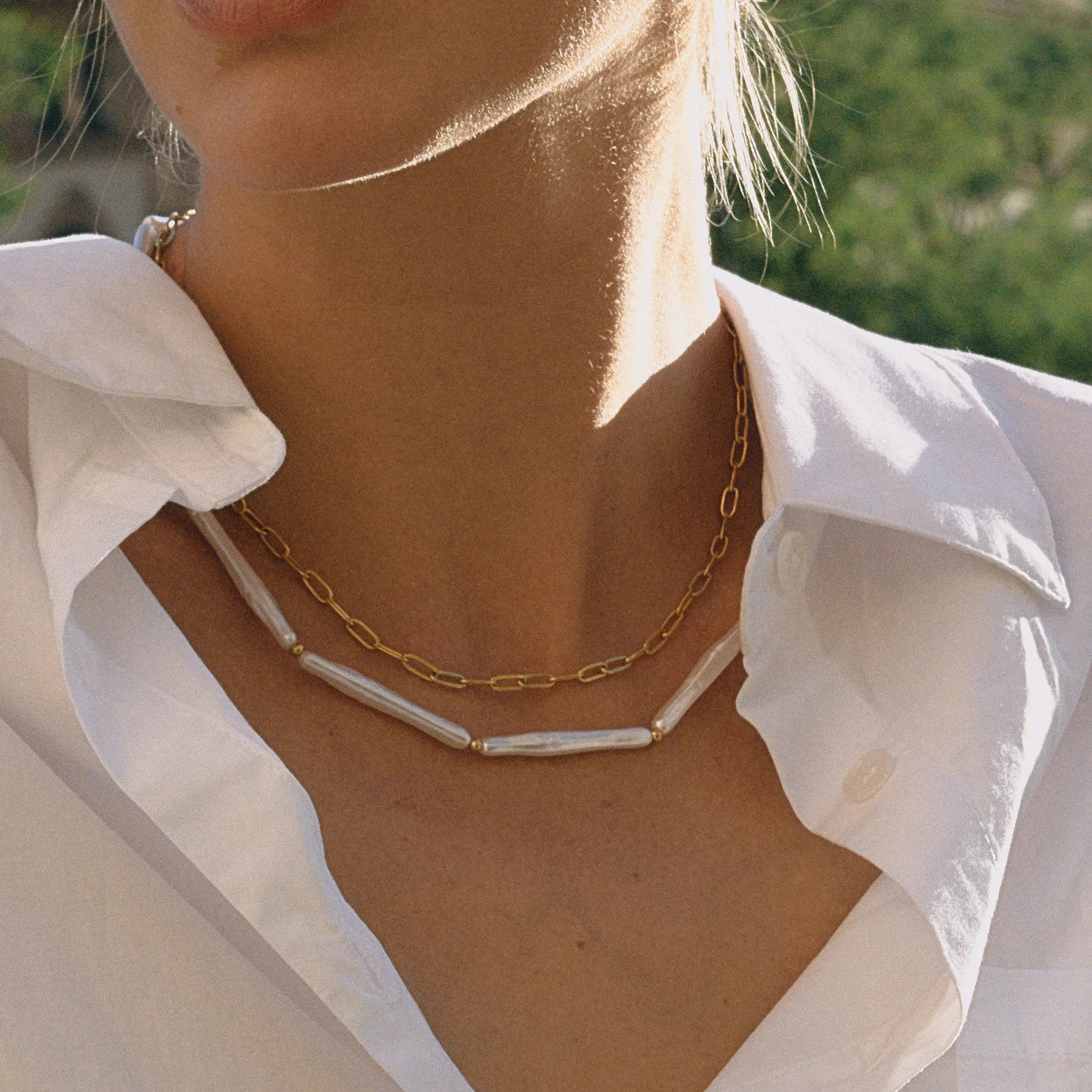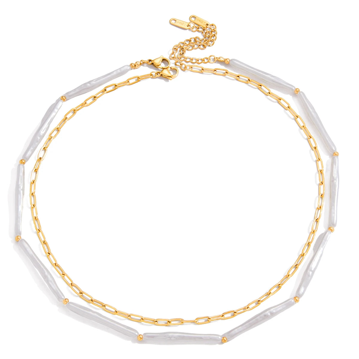 Колие Двойна Елегантност с Перли с 18К Златно Покритие