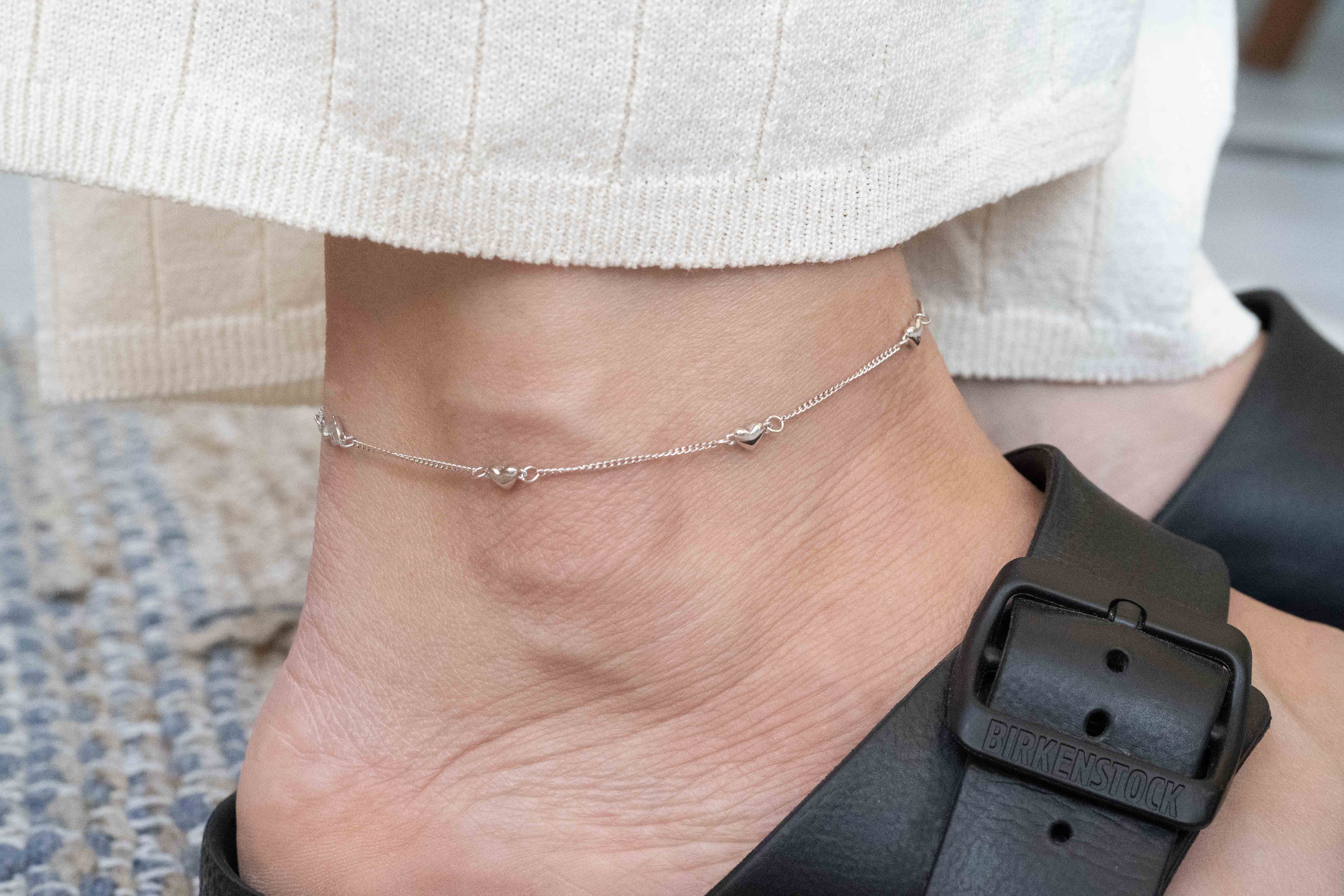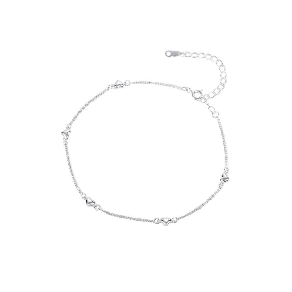 Сребърна Гривна за Глезен Сърце S925