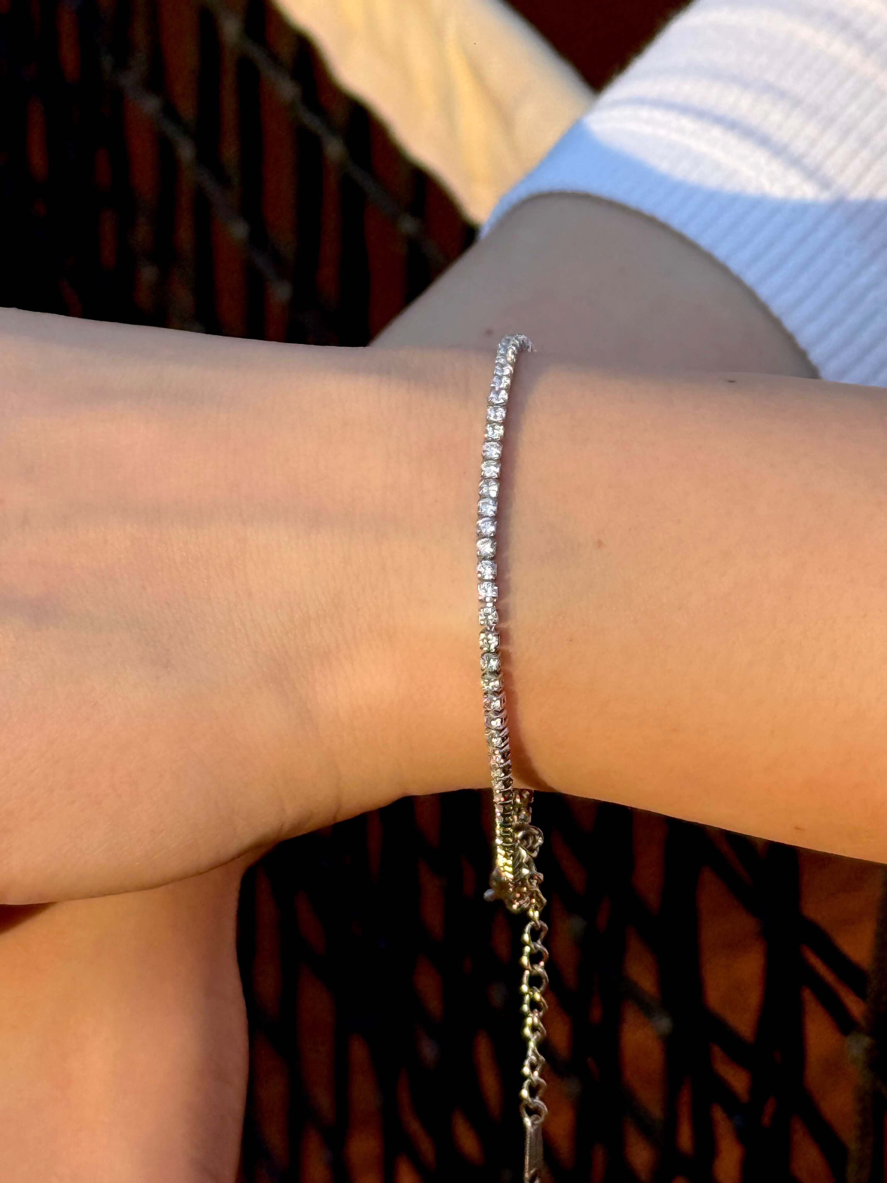 Добавете елегантен завършек към всяка визия с тази модерна тенис гривна от неръждаема стомана, позлатена с 18 карата злато. Съчетавайки стил, устойчивост и безвременна красота, този аксесоар е идеален както за ежедневно носене, така и за специални поводи.