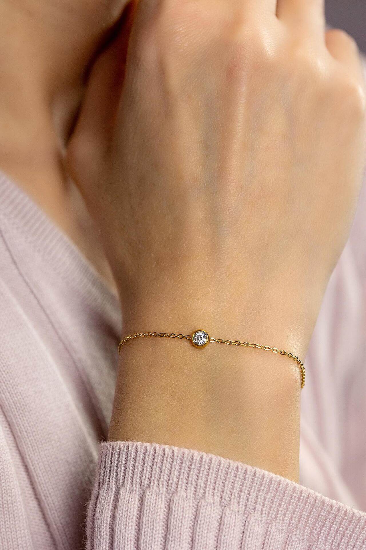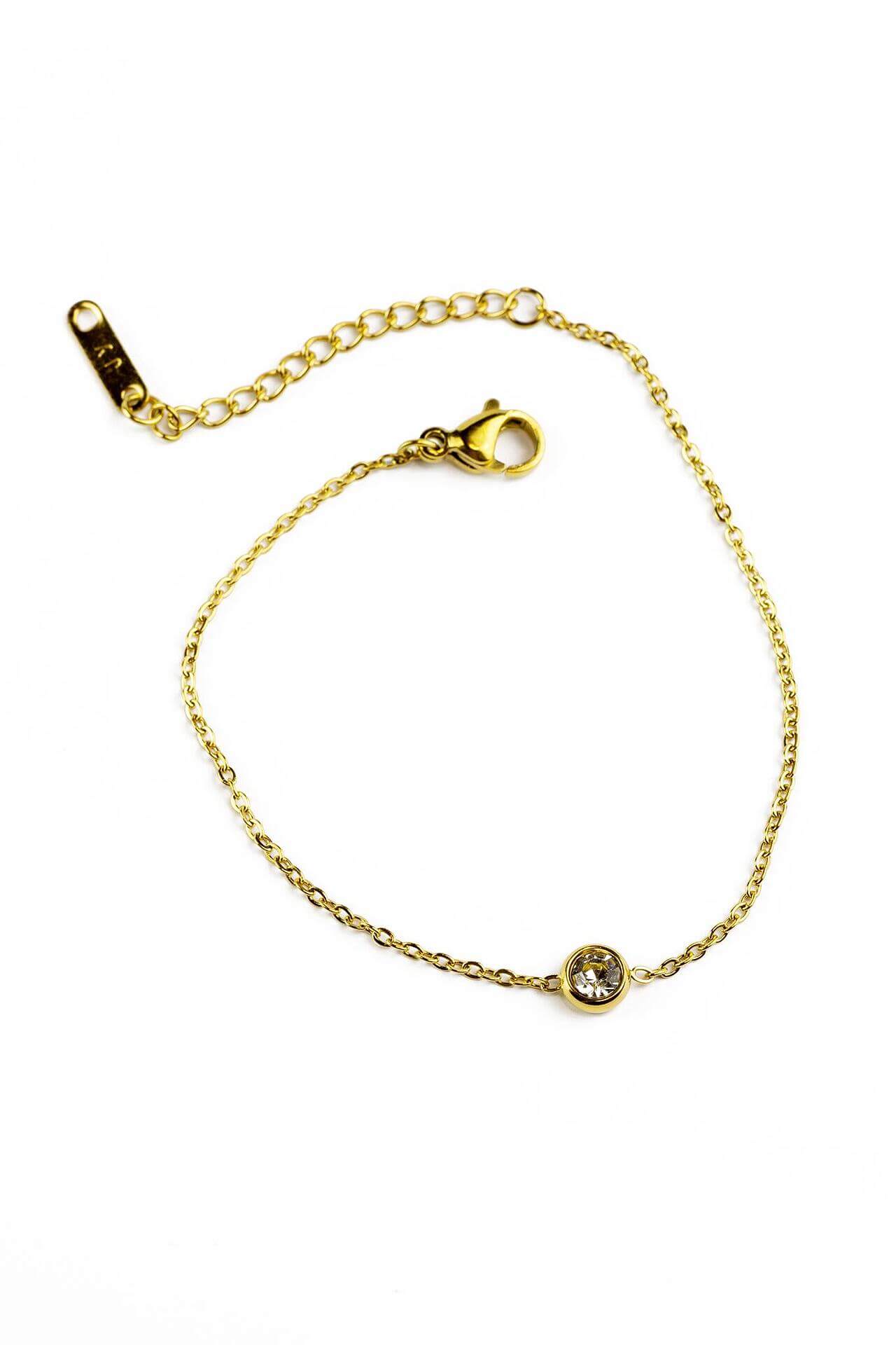 Изчистена златиста гривна с блестящ камък